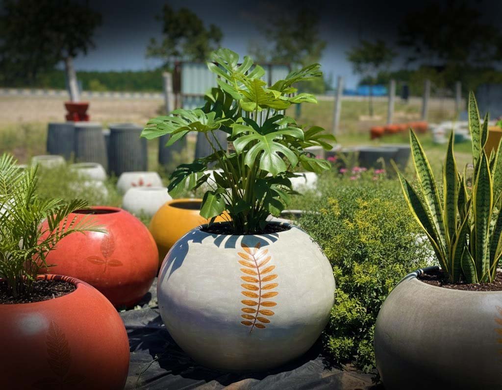 The Big Ball (Auro Pot) features a bold, spherical design that adds a sophisticated and eye-catching touch to any space. Made from durable, eco-friendly materials, these pots ensure excellent drainage and aeration, promoting healthy plant growth. Their spacious size makes them perfect for larger plants, decorative greens, and small trees. Ideal for both indoor and outdoor settings like homes, offices, gardens, and patios, these lightweight yet sturdy pots offer a perfect blend of functionality and modern aesthetics.