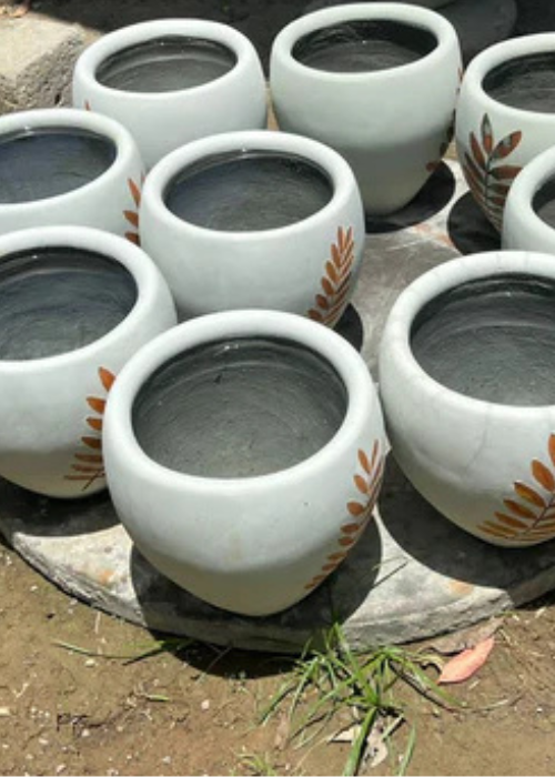 Cement pots are a durable and stylish choice for indoor and outdoor plants. They are made from a mixture of cement, sand, and water and come in a variety of shapes and sizes, from small and simple designs to large and ornate styles.