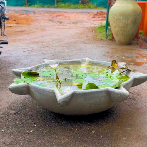 The Star Lilly Pond is an elegantly designed ferro cement water feature, perfect for creating a serene and luxurious atmosphere in gardens, patios, resorts, and landscape projects. Its unique star-shaped design enhances the beauty of water lilies and other aquatic plants, making it a centerpiece in any space.
